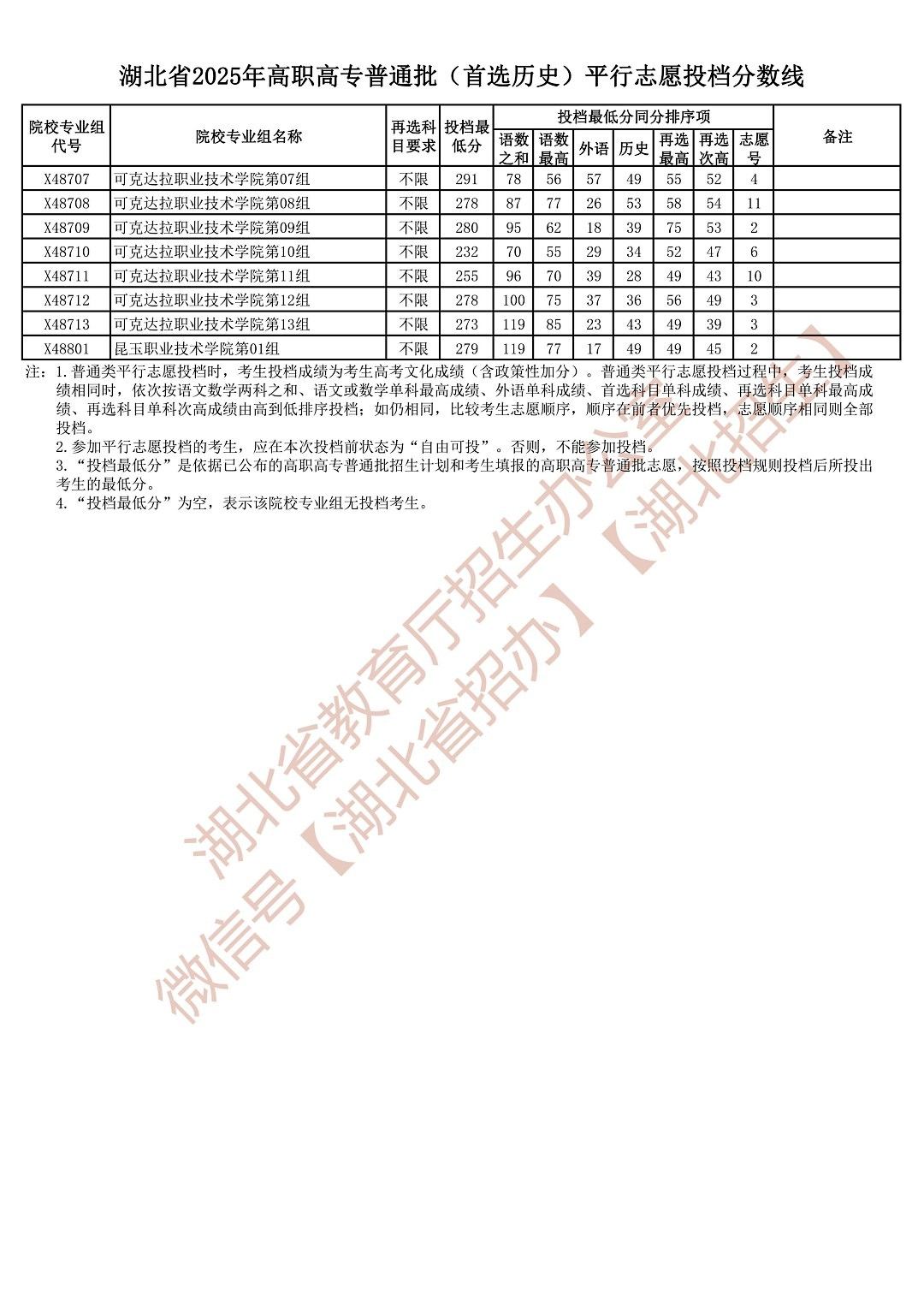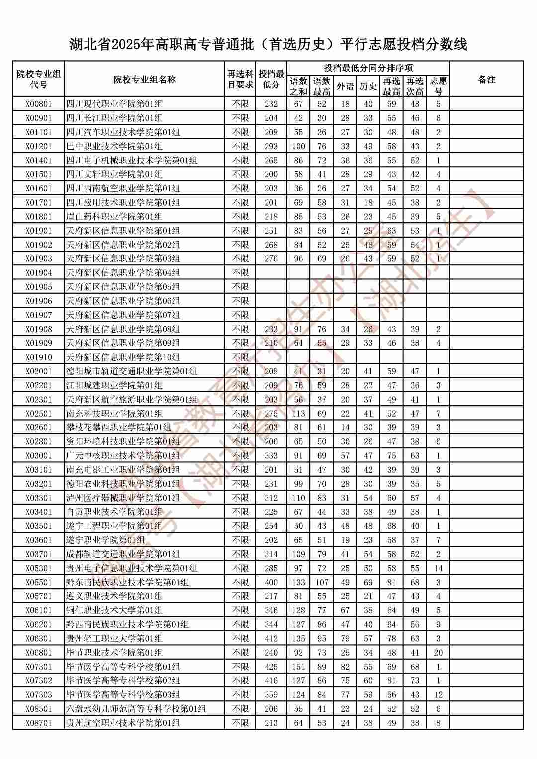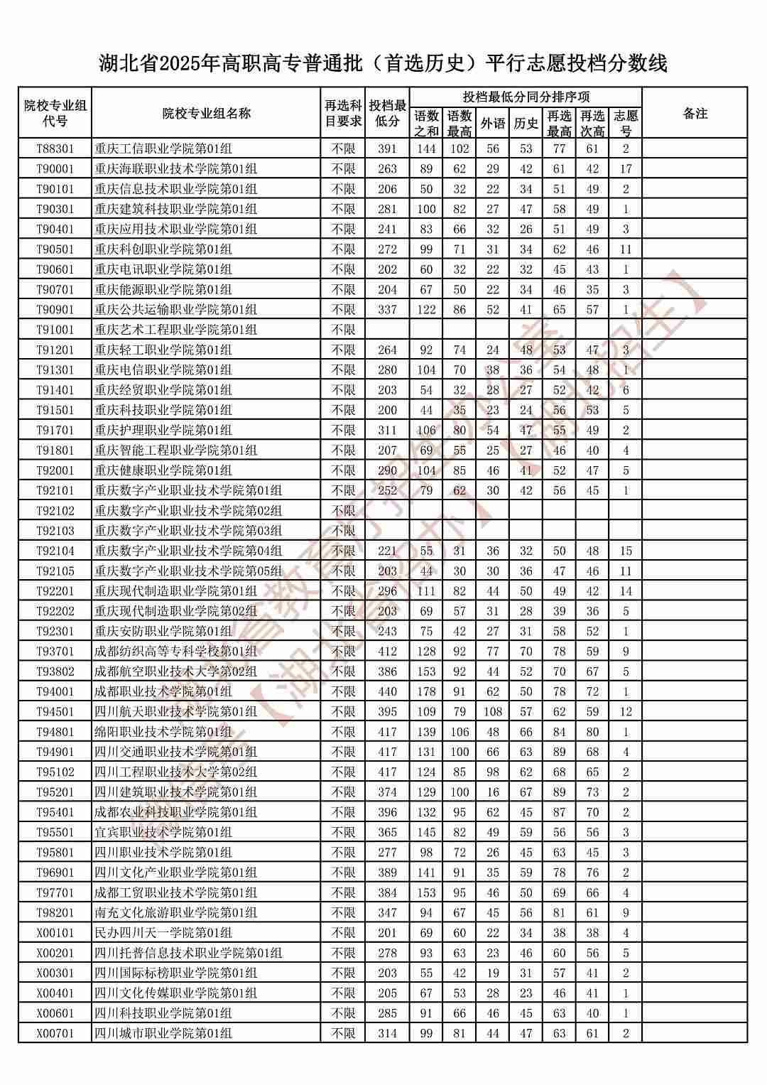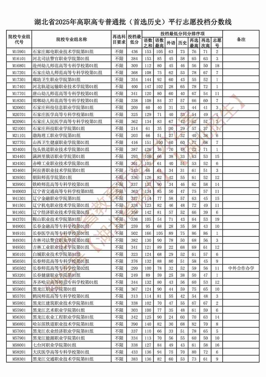 湖北省2025年高职高专普通批(首选历史)平行志愿投档线发布