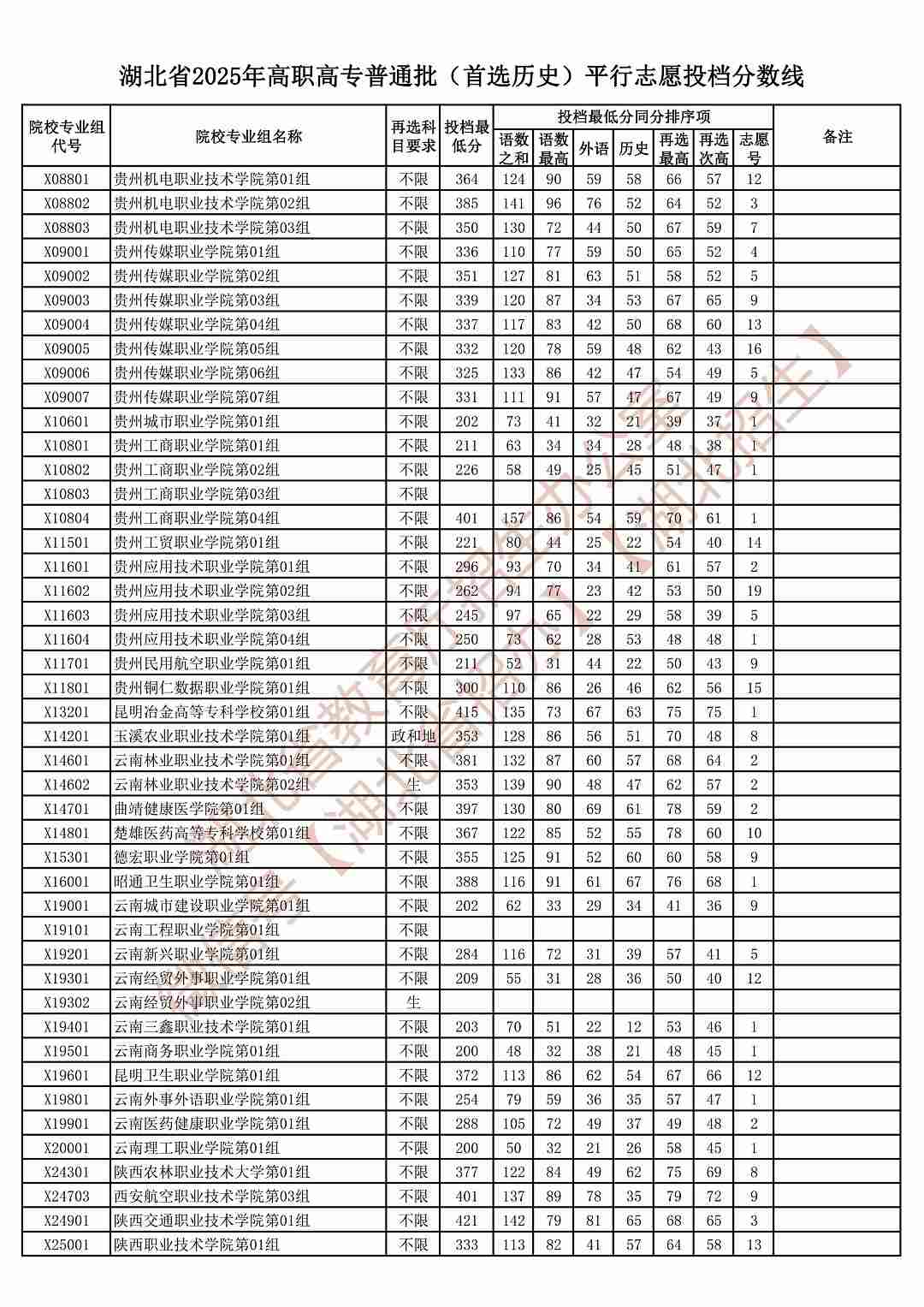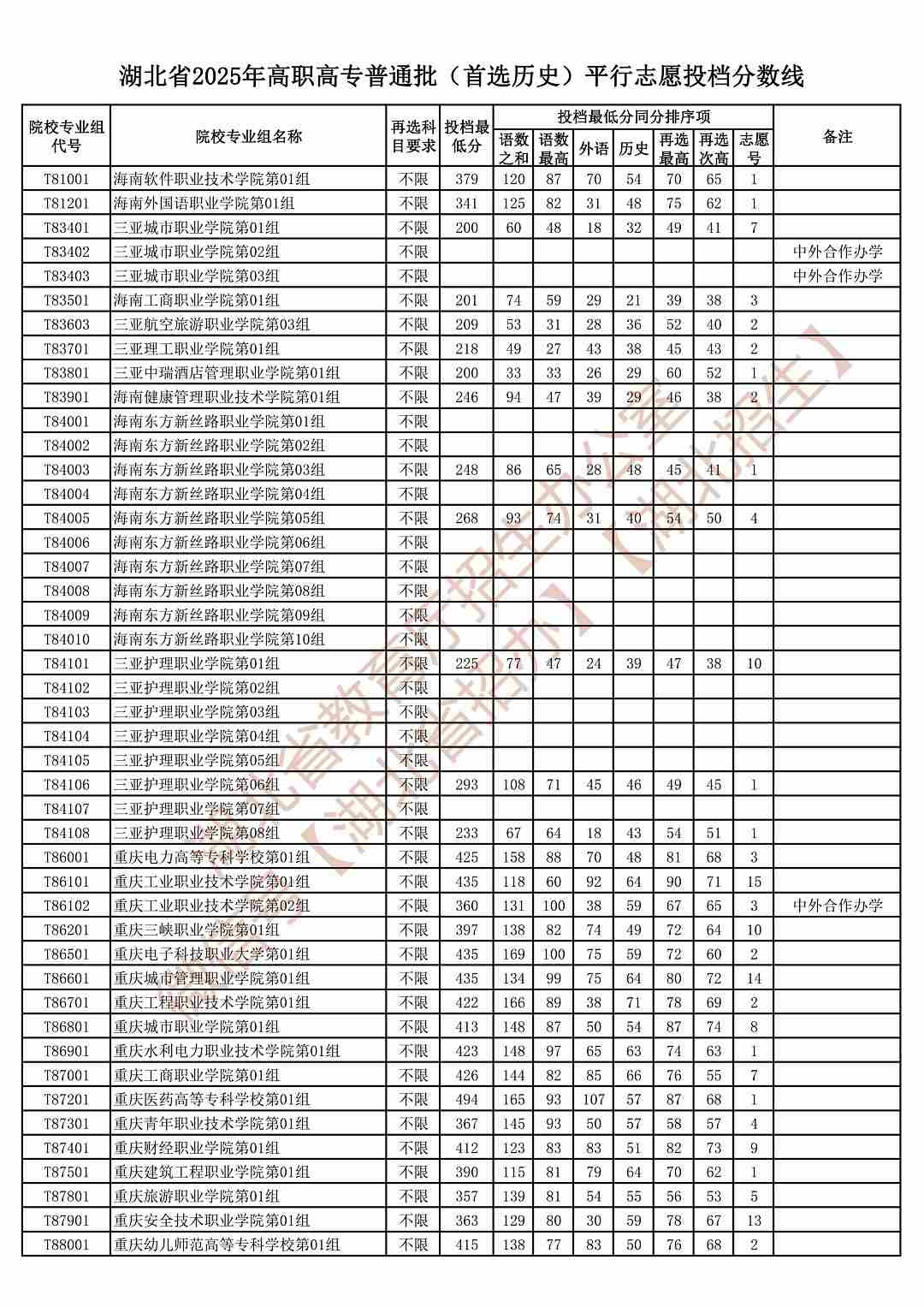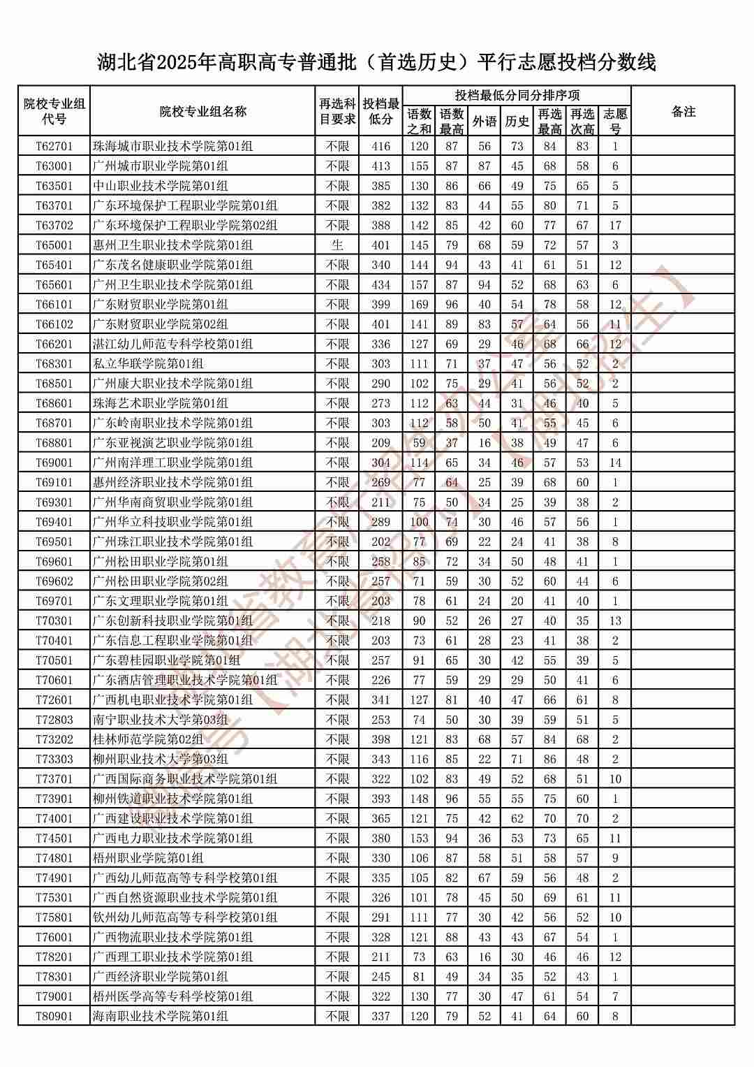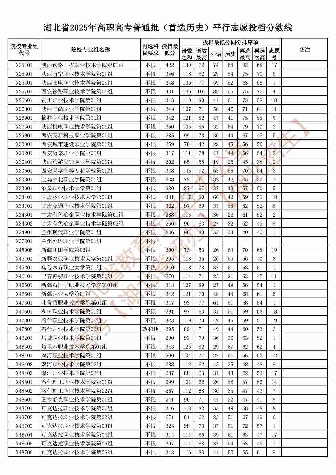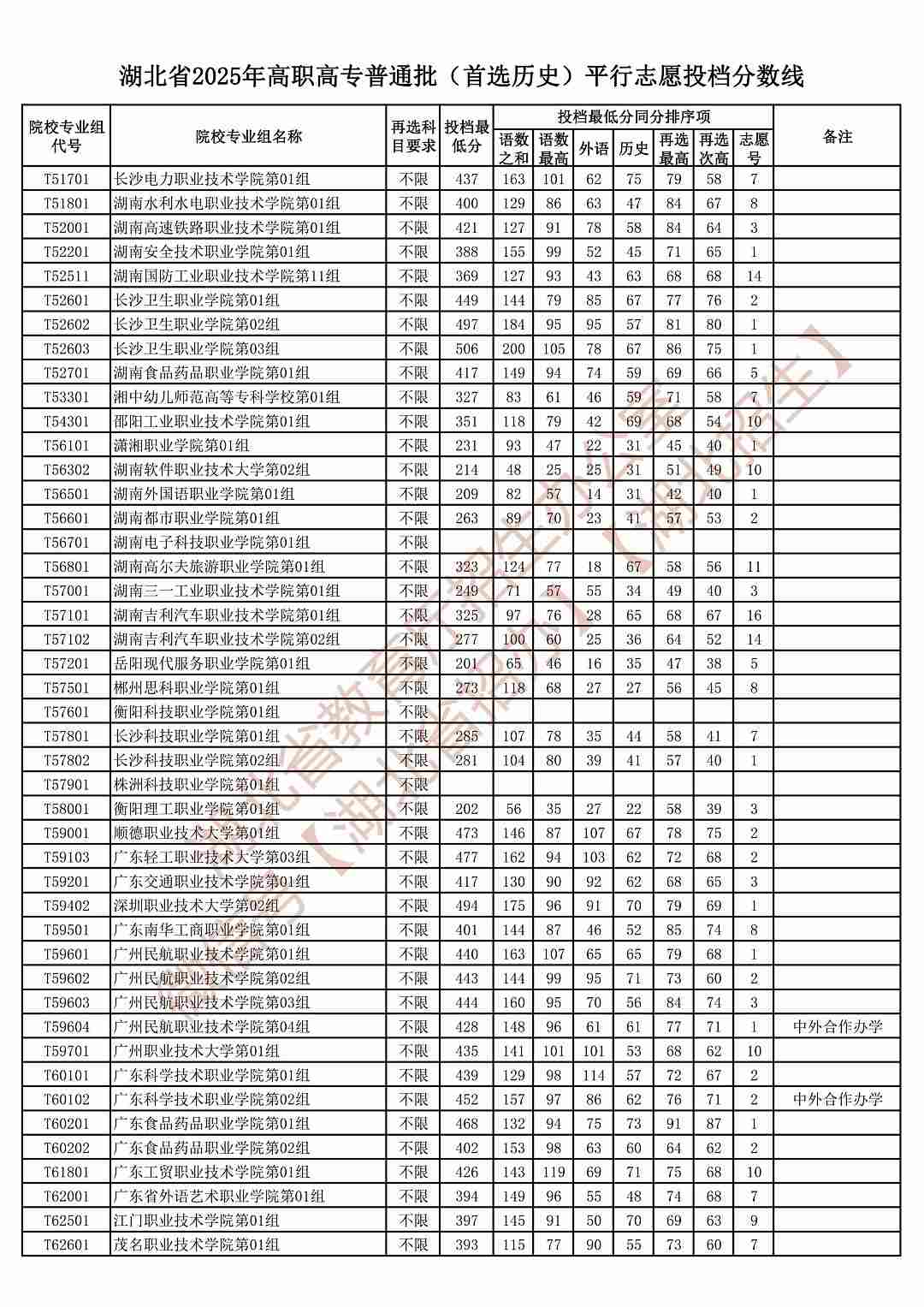湖北省2025年高职高专普通批(首选历史)平行志愿投档线发布
